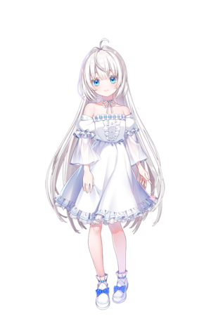 Her skin, hair, and eyes are all pale and translucent white.